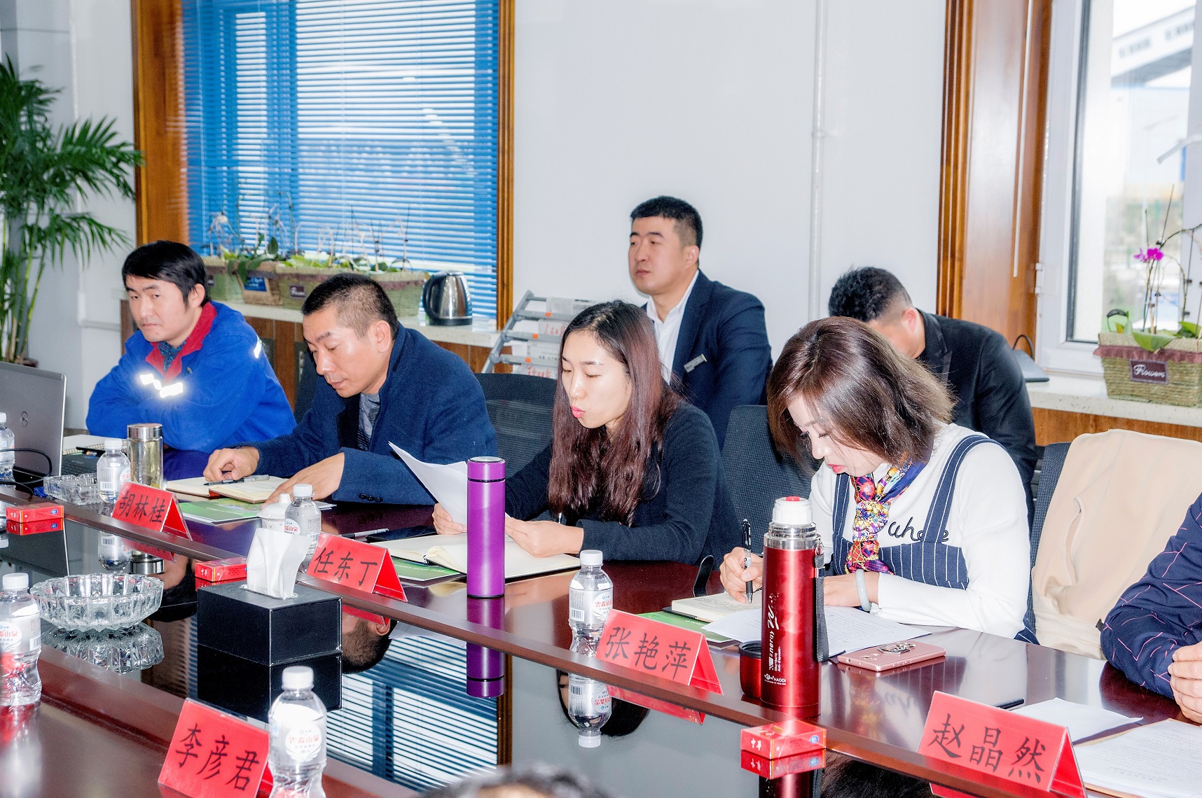 接下来庆翔热电总经理赵晶然、庆翔粮油总经理王洪涛和黑龙江中鑫热电副总经理白玉凤分别就近一段时间的工作作以总体汇报和并对下步工作重点做以简要说明;