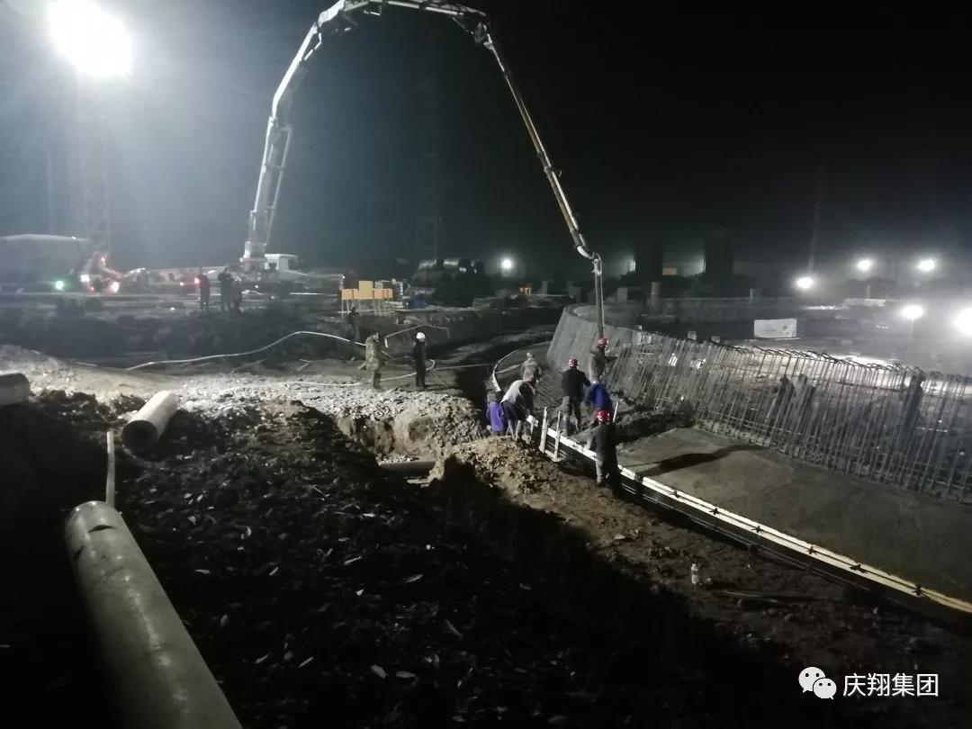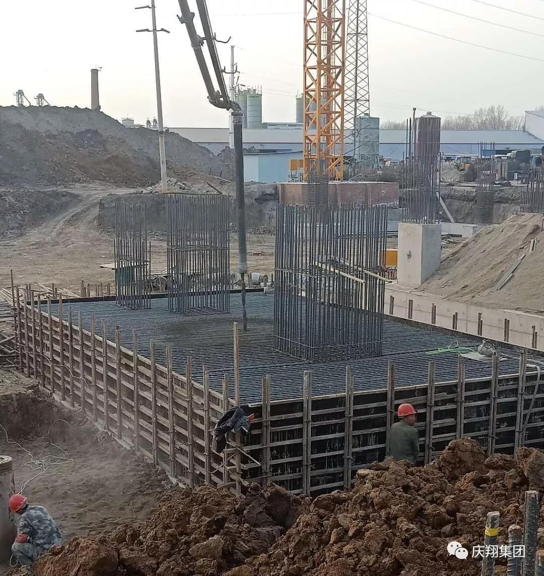 (庆安项目部正在浇筑锅炉承台)