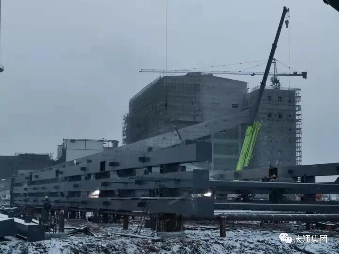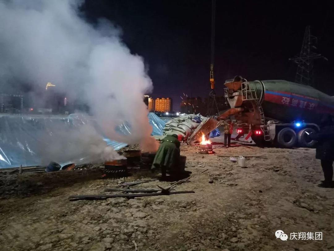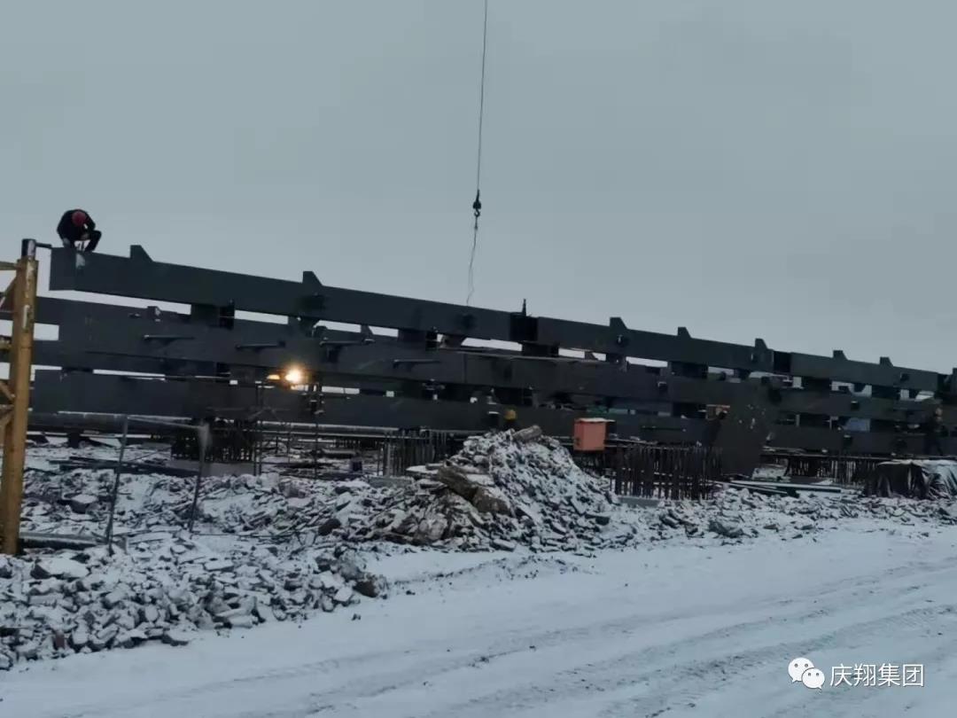 “其实,这场大雪可以说是意料之外、情理之中。我们对气温下降,甚至飘雪早有准备。”耿治平说,11月15日,厂房A列浇筑完毕,这标志着整个厂房基础建设完成,总计使用混凝土1100立方米。当天夜里,气温就骤降至零下18度。第二天,庆安项目部组织人员,迅速用稻壳、编织袋等完成了保温措施。没过几天,11月18日天空洋洋洒洒飘起了雪花,“幸好保温及时,不然下雪后就晚了。”